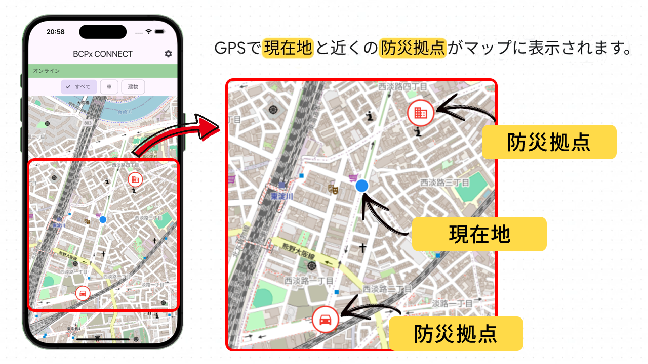 災害時、誰がどこにいるか把握できず初動が遅れます。位置と支援要請を可視化し、迅速な連携を実現します。